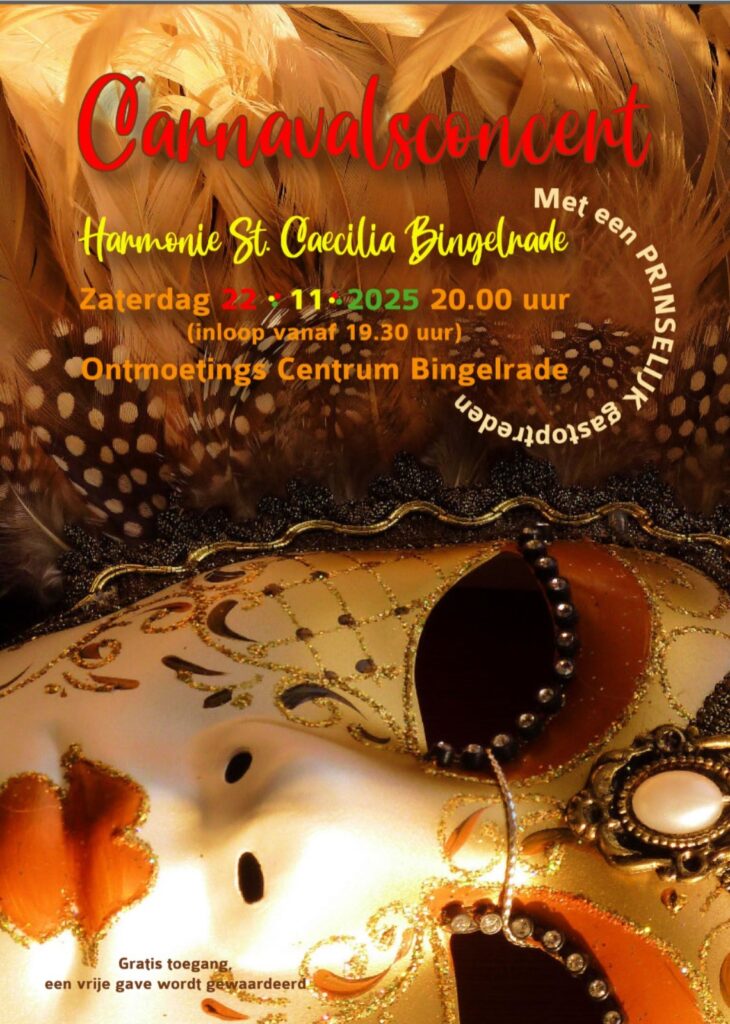 22 November 2025, aanvang 20:00: Carnavalsconcert, Ontmoetingscentrum Bingelrade, Dorpstraat 145